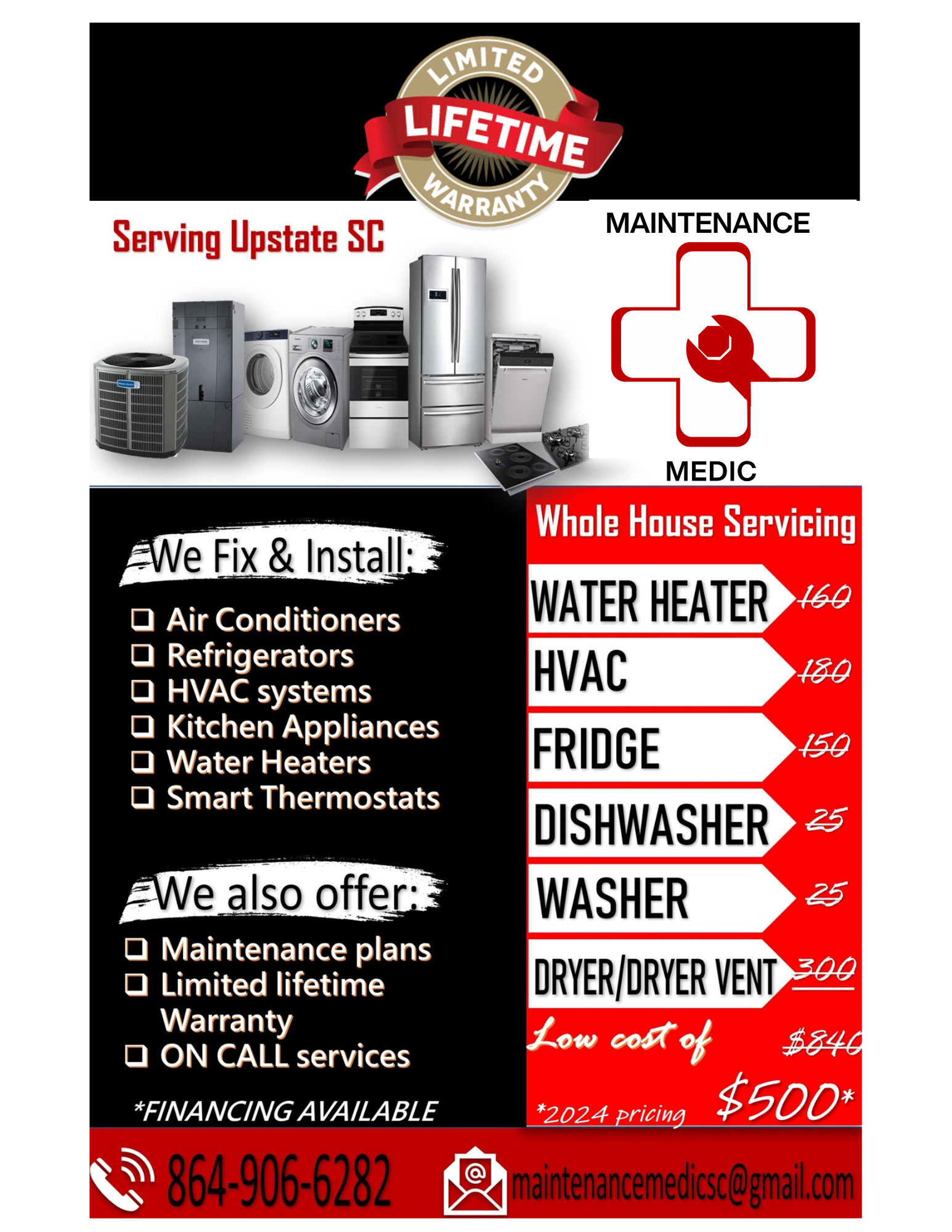 Commercial and Residential Routine and emergency service and repair on all makes and models.